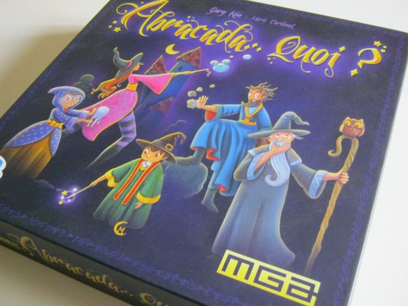 Parvenir à trouver le style graphique qui conviendra à un jeu n'est jamais chose aisée. Pourtant, c'est souvent sur ses épaules que reposent la cohérence et l'immersion du joueur dans le jeu. Dans le cas d'Abracada…Quoi ? nous le devons à Marie Cardouat, un nom qui ne doit pas vous être inconnu. Et si j'ai décidé de consacrer un paragraphe à ces graphismes, c'est qu'ils ne m'ont pas enchantés, et cela malgré le temps du jeu. Ces derniers doivent parvenir à retranscrire l'ambiance d'un jeu tout en plaisant au public qu'ils ciblent. Ici les illustrations semblent destiner le jeu à un public jeune, or je l'ai essayé avec ce public précisément et celui-ci est trop compliqué pour des enfants en dessous de 7 ans. Pourtant, le style les accroche immédiatement. De plus lorsque vous lisez le petit laïus qui introduit le jeu, il est clairement dit que les magiciens ne sont pas en train de répéter pour la kermesse du printemps, mais d'en découdre violemment pour une raison avide : l'obtention d'un grimoire. Rien d'amical là-dedans. Si je comprends l'envie de travailler avec cette talentueuse personne, à qui l'on doit les illustrations de Dixit, je pense que celles-ci ne convenaient pas au style de jeu, et ont tendance à tromper (gentiment je vous rassure) sur le principe et le public du jeu. Sans tomber dans les sorciers typiques des jeux plus guerriers, des illustrations moins enfantines auraient je pense mieux servies Abracada..Quoi ? Ce que je reproche donc n'est pas la qualité du travail de l'illustratrice qui est tout à fait correct, mais le style choisi pour le jeu. Il y a dans cela une grande nuance.