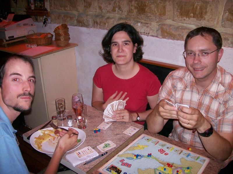 Vu que le dernier et suivant ne passe qu'une heure après, nous sortons un petit jeu de cartes bien sympa (Handelfursten) et nous nous en faisons une partie en attendant de rentrer, fourbus, chez nous...