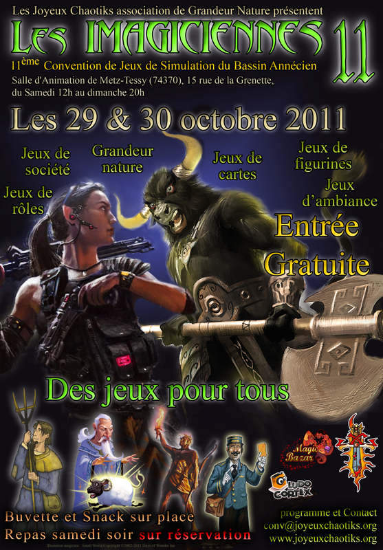 Du samedi 29 au dimanche 30 octobre, vous serez invités à jouer à différents jeux de plateaux, d'ambiance, de figurines, de cartes, de rôles.