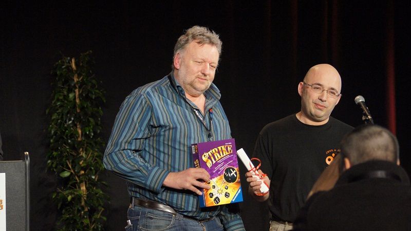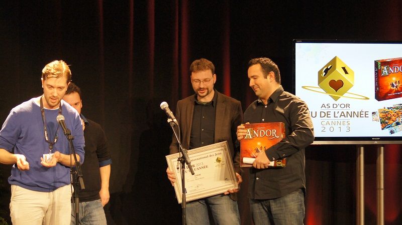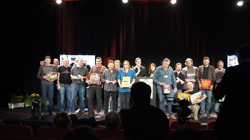 Le festival ne commence officiellement que demain matin mais ce soir il y avait la remise des prix de l'As d'Or, pour la première fois ouverte au public. J'y étais avec tout le gratin du jeu de société français. Ensuite, première soirée au off avec test d'un proto, mélange de Shadow Hunter et dominion et d'un jeu de lettre plutôt rigolo. Pas de gros jeux au off ce soir.