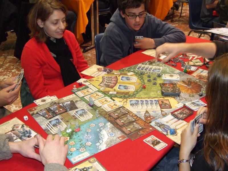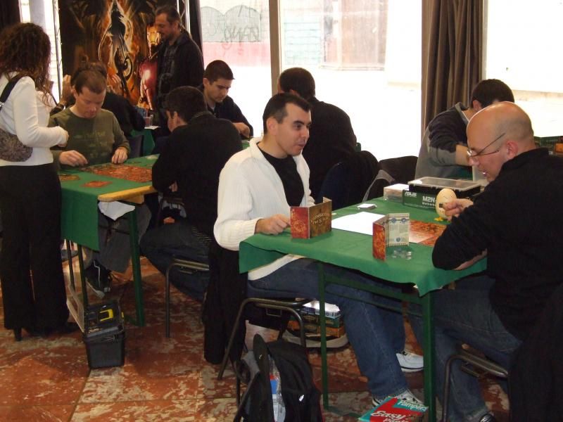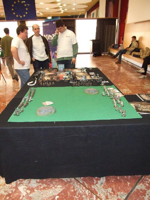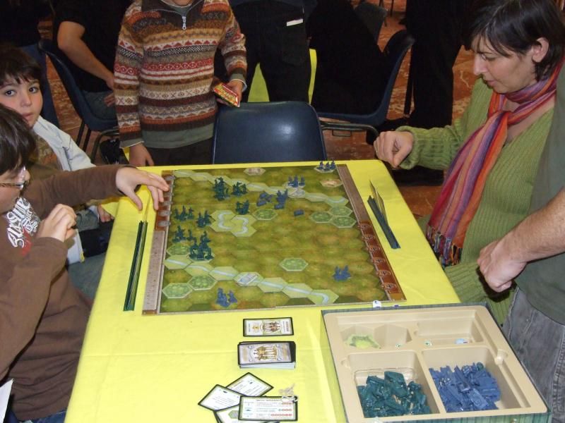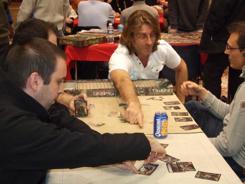 Un autre jeu DOW très présent ce jour là : Les chevaliers de la table ronde...j'ignore s'il y avait un félon à cette table, mais déjà deux épées noires pour une blanche...hmmm...à noter que le jeune garçon à lunette est issue d'une famille de redoutables joueurs de part chez nous et je crois me souvenir qu'il est fan de Caylus !