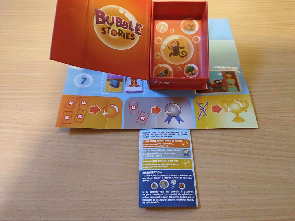 Bubble Stories ne déroge pas à la règle mais à la différence des jeux «des grands » l’enfant lui pourra toujours essayer de s’améliorer : sachant qu’il connaît un peu les endroits à explorer, il pourra toujours réussir ses missions en limitant au maximum le nombre de cartes impasse pour tenter d’obtenir la récompense suprême du jeu : la bulle d’or (aucune carte impasse à la fin d’une aventure).