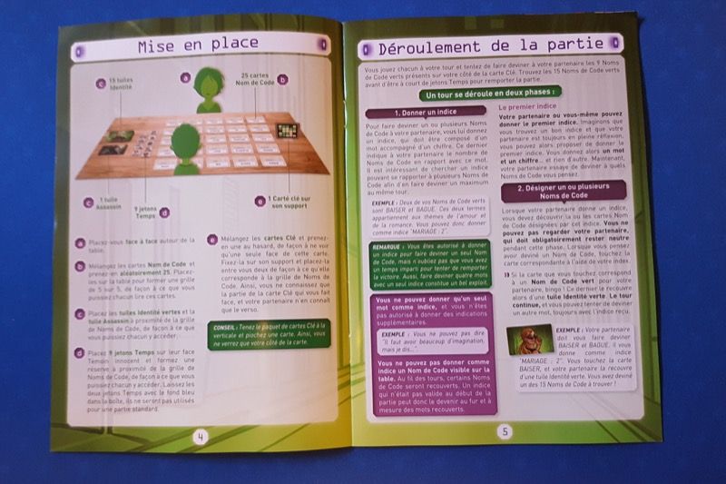 Le livret de règles de Codenames Duo comporte 16 pages. Il est bien illustré, on y trouve beaucoup d'exemples illustrés et quelques aides en fin de livret pour être plus efficace dont un diagramme expliquant les "secrets" des Cartes clé pour les plus matheux d'entre vous...