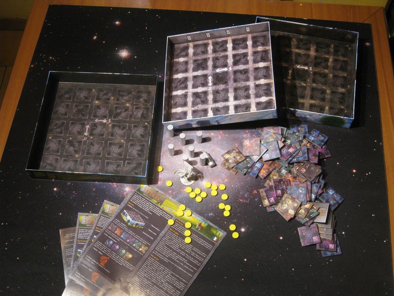 Ici, voici l'ensemble du matériel de jeu. Oui, je sais, j'ai mis la boite avec.