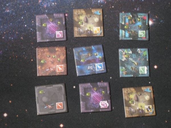 Voici les différentes tuiles qu'on peut retrouver. Beaucoup n'ont que des points de victoire, mais il existe quelques tuiles avec des pouvoirs. Au moment où un joueur reçoit une tuile, il peut s'en débarrasser pour activer ce pouvoir.
