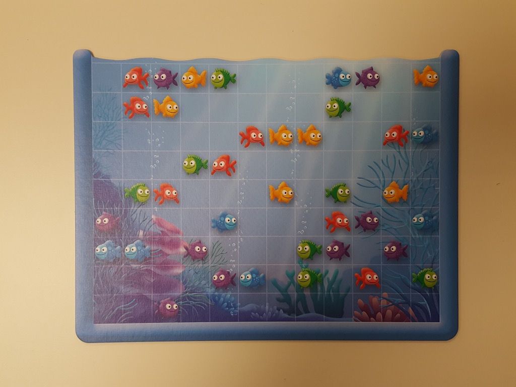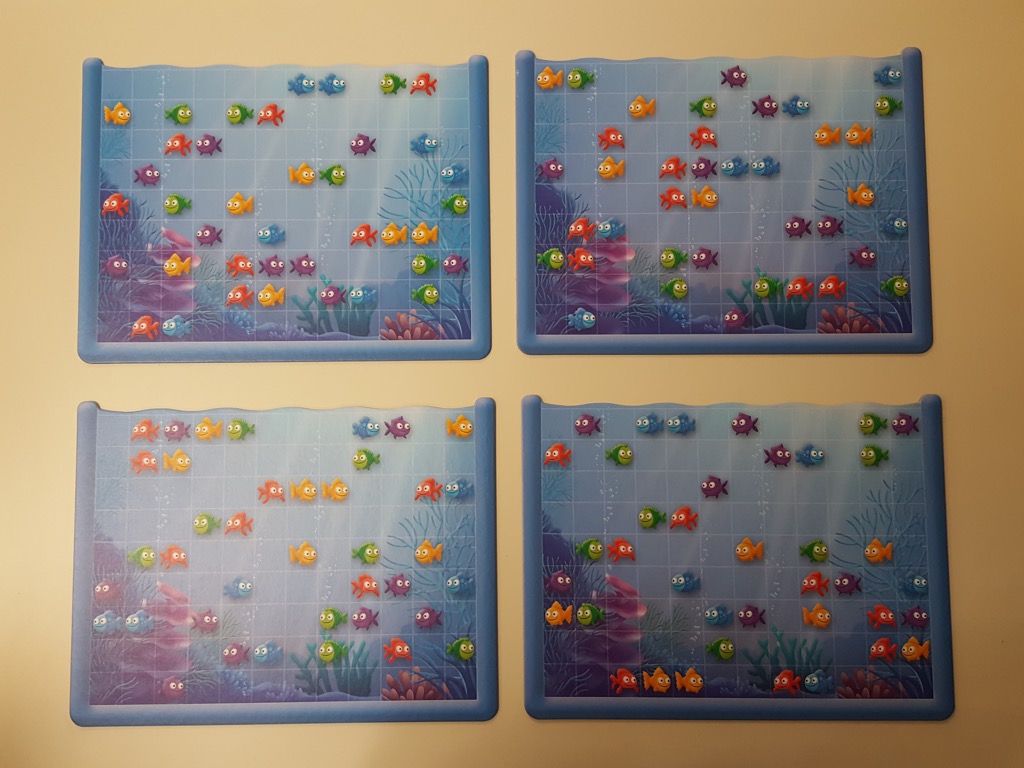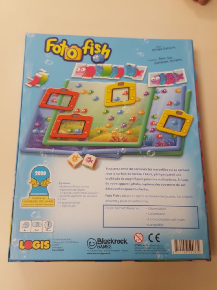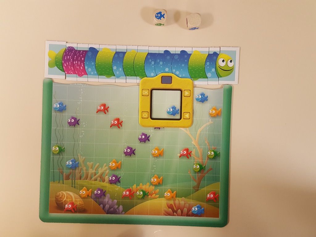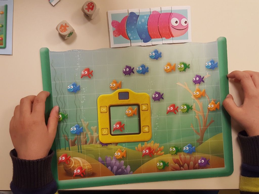 Avec un matériel solide (plateau, appareil photo, segment de poisson) et des parties rapides (une quinzaine de minutes) calibrées pour cette tranche d'âge le jeu donne envie de jouer.