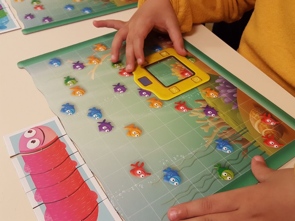 On notera que le petit joueur est libre de choisir sa couleur de segment pour se créer un poisson multicolore ou pas !!!