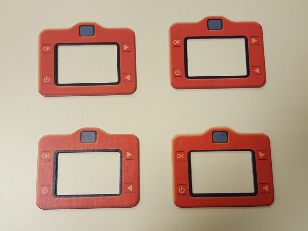 Vue d'une partie avec le plateau d'un enfant de 4 ans avec l'appareil photo jaune et le plateau côté facile (vert).