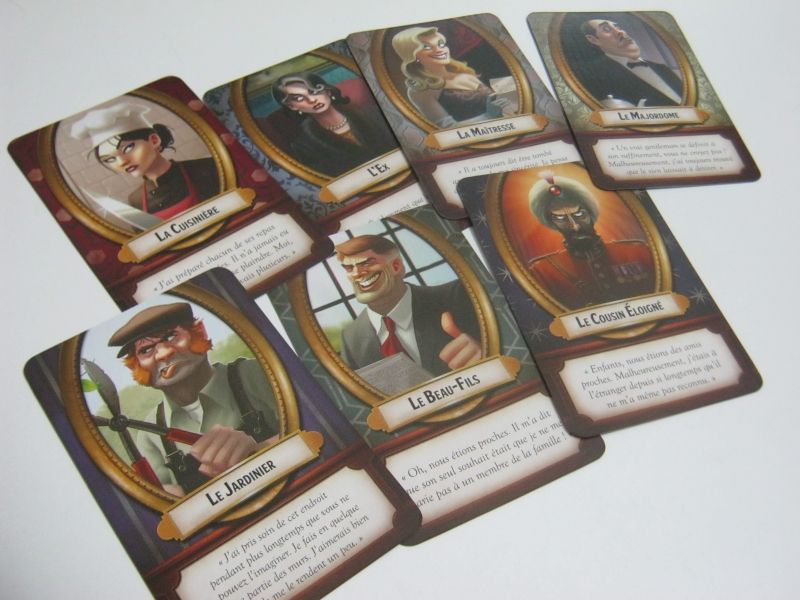 Elles sont le cœur du jeu puisqu'il s'agit de la personne que vous allez incarner durant la partie. Une fois distribuée celle-ci devra rester secrète, car le but pour les autres joueurs va être de découvrir votre identité pour ainsi vous éliminer. Une citation souvent caustique nous présente succinctement le personnage, et vous démontre immédiatement que ce ne sont pas des enfants de cœur.