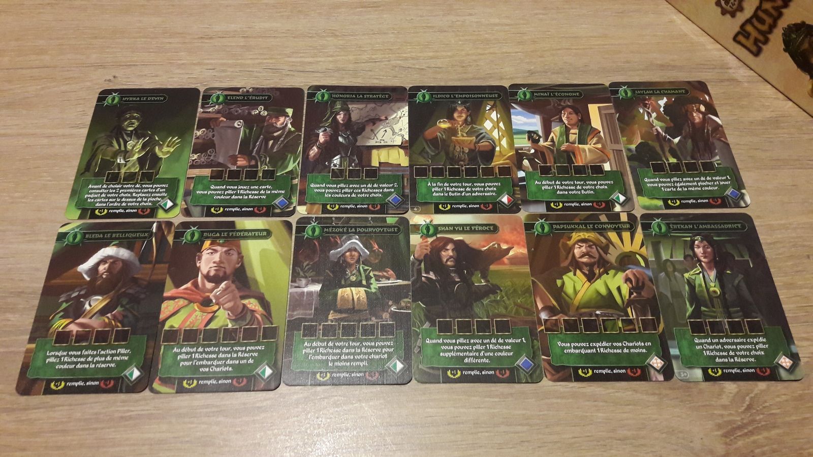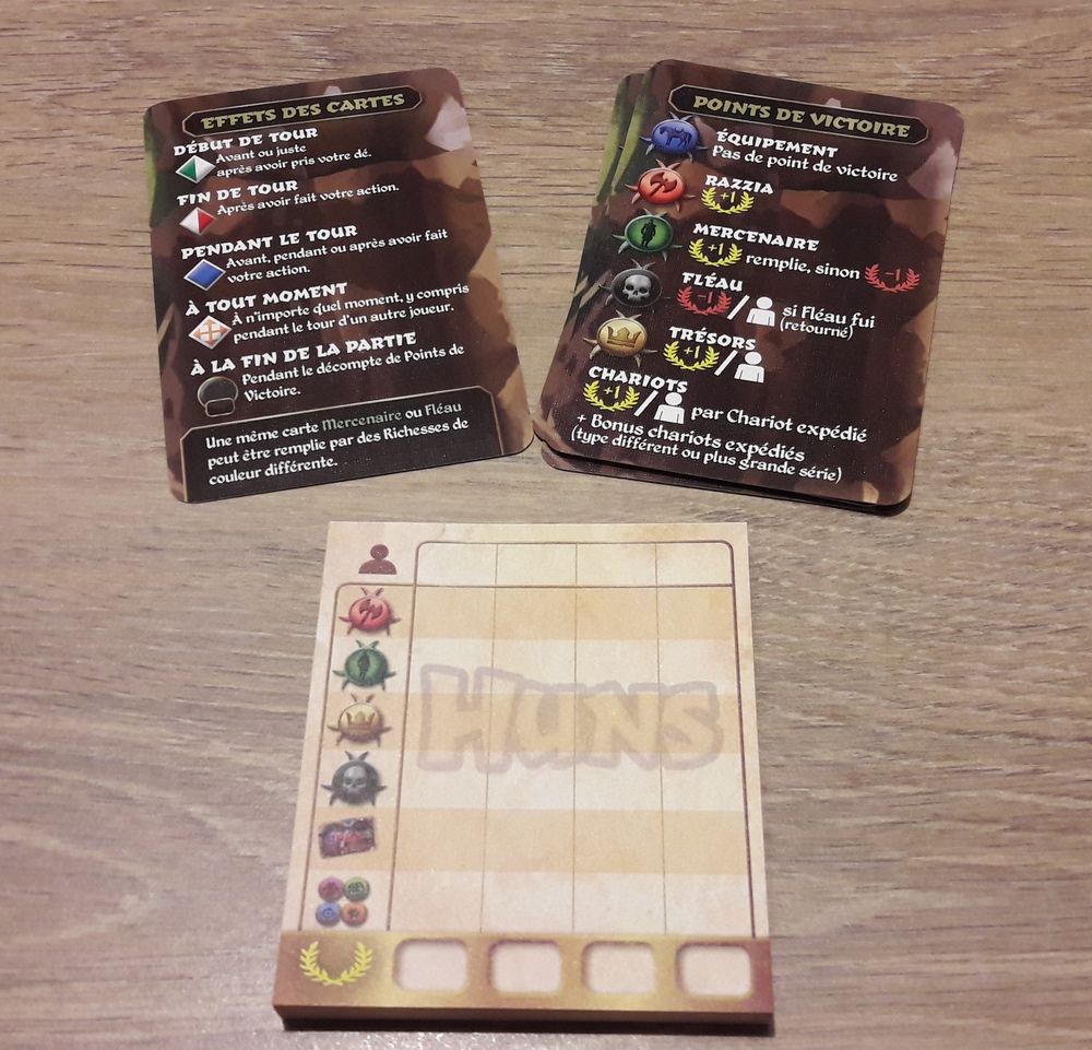 Vous devrez pillez ces ressources pour remplir vos chariots, payer la solde de vos mercenaires (cartes vertes) ou pour vous débarrasser des fléaux (cartes noires).
