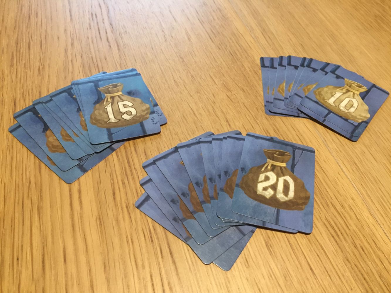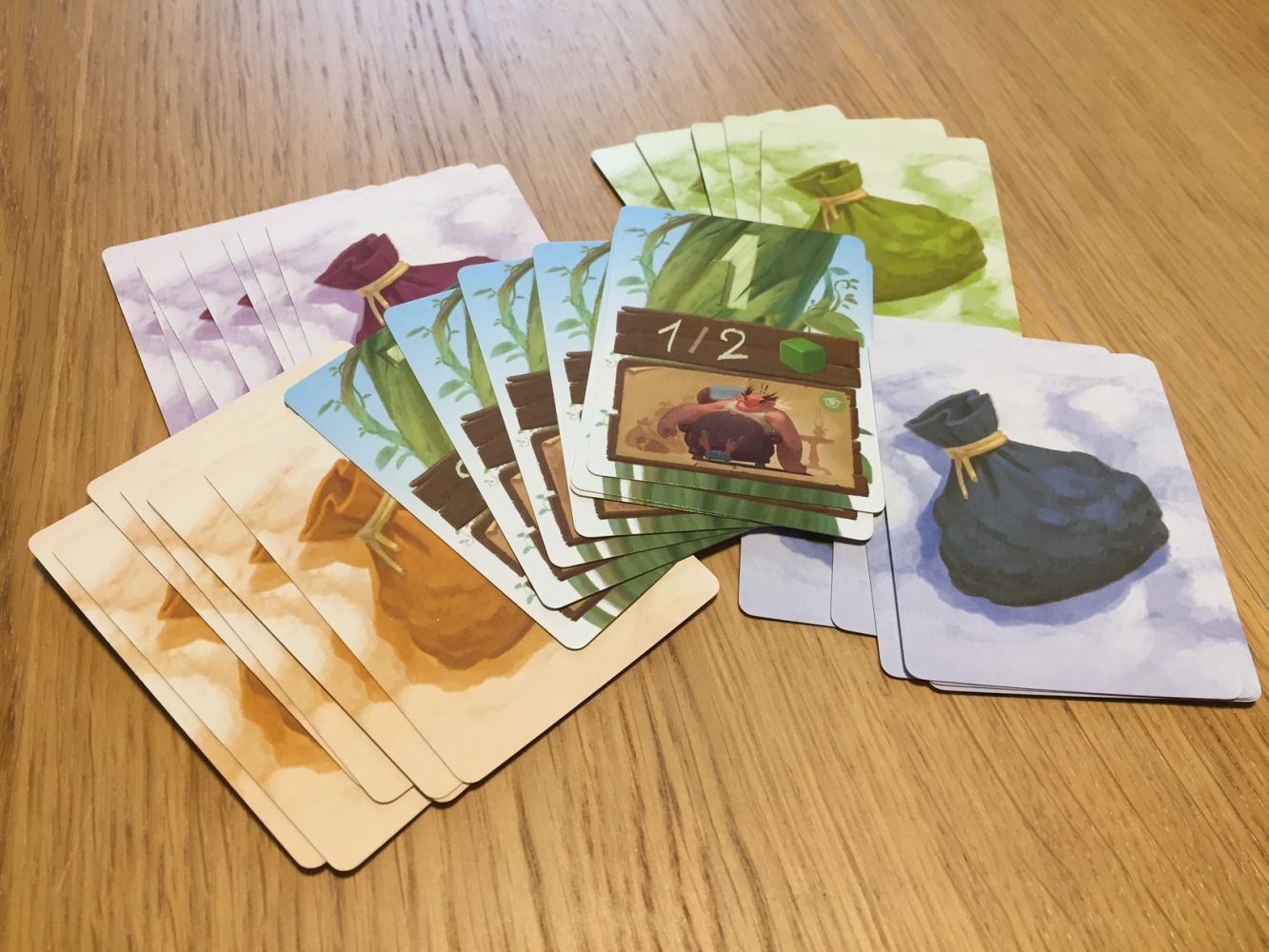 Ici le setup joueur devient encore plus évident, il y a cinq lots de cartes identiques, elles ne sont pas petites comme celle des "trois petits cochons" mais elles sont de la bonne taille pour rester maniables sans être trop encombrantes (et surtout elles restent visuellement lisibles).