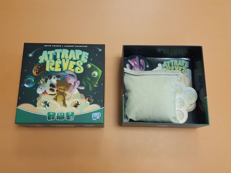 Attrappe Rêves est le deuxième jeu de l'éditeur Space Cow (studio jeux enfants des Space Cowboys). C'est un jeu onirique d’estimation de taille de tuiles de Laurent Escoffier et David Franck, à qui on doit ensemble Bloom, Pix, Loony Quest...) et illustré par Maud Chalmel (Siggil, Noxford, Oliver Twist).