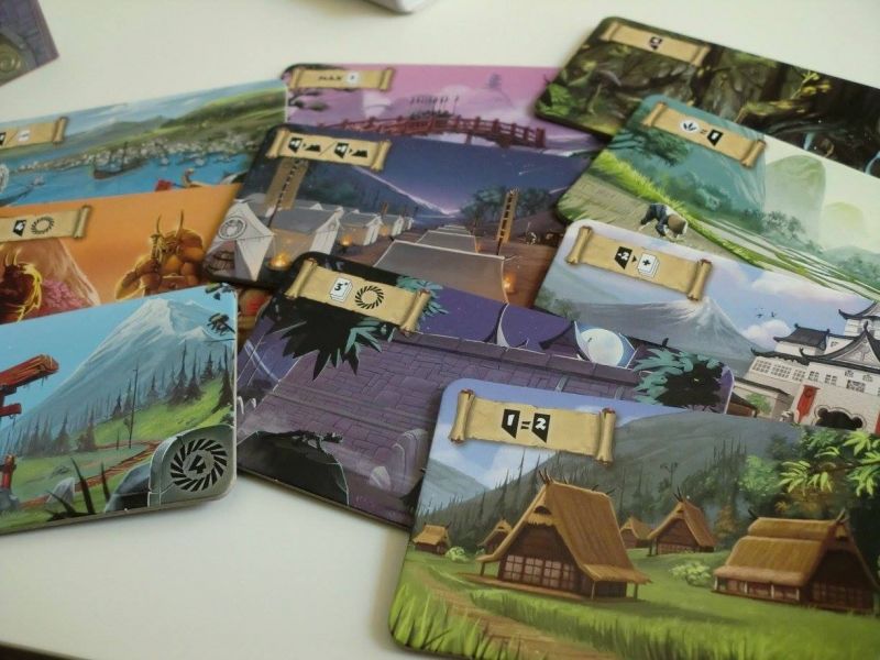 Chaque tuile dispose de 4 ou 6 points de victoire, inscrits au dos et dans le coin inférieur droit. À 2 joueurs ce seront 4 champs qui seront utilisés (2 de 4 points et de 2 de 6), à 3 joueurs ça sera 6 champs (3 de chaque) et enfin à 4 ça sera 8 champs de bataille, 4 de chaque. De quoi renouveler les parties.