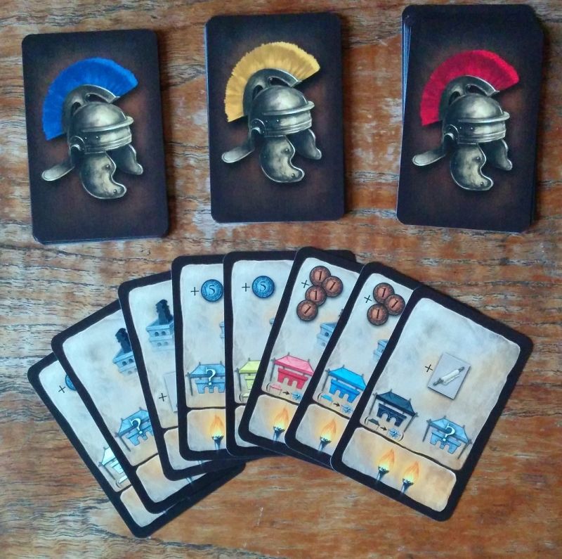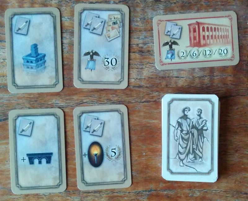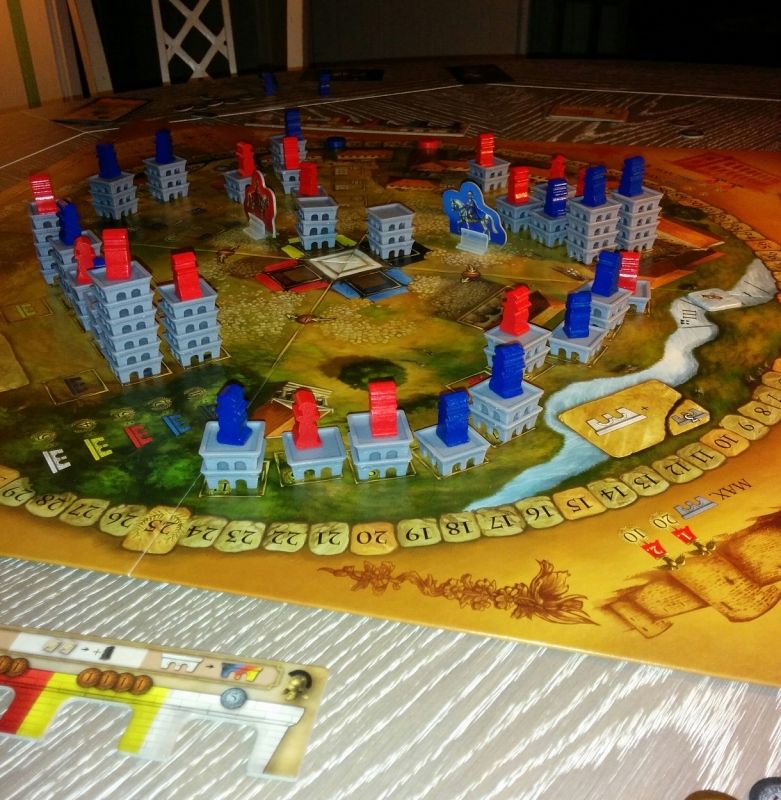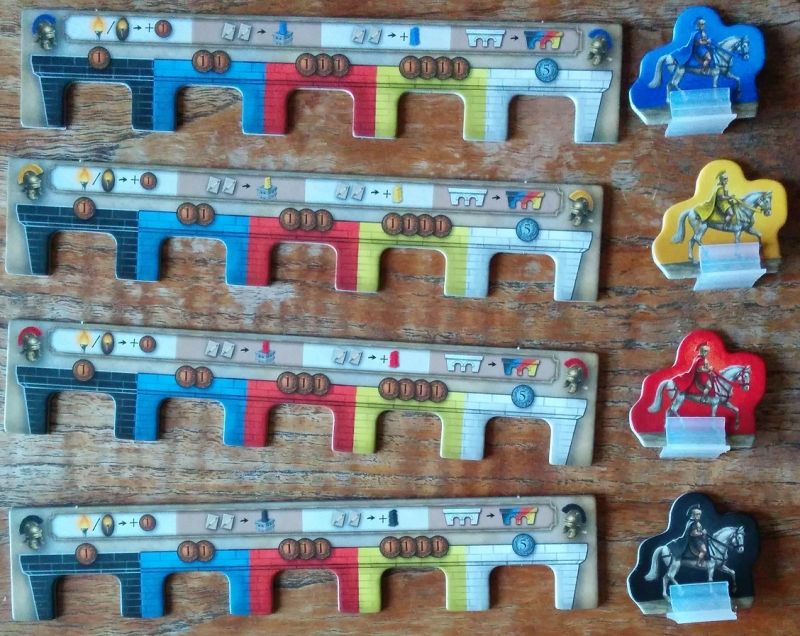 Il faudra récupérer certains des pions Romain en cours de partie et les placer sur nos éléments de construction pour en indiquer la propriété. Les marqueurs Action indiquent celles choisies sur les cartes Action.