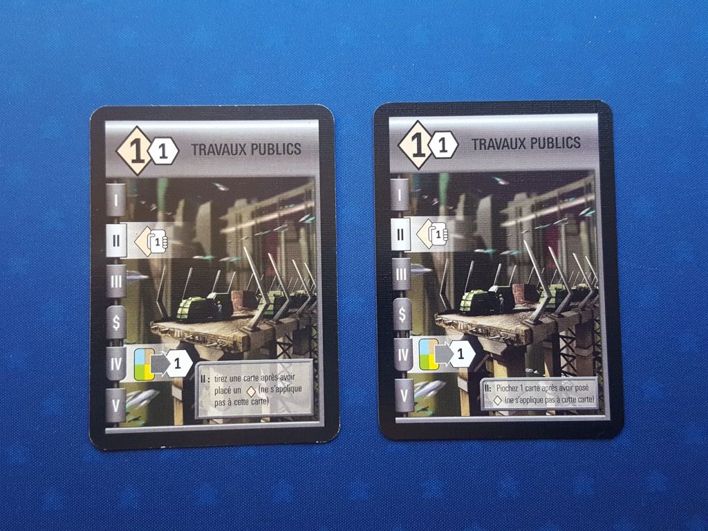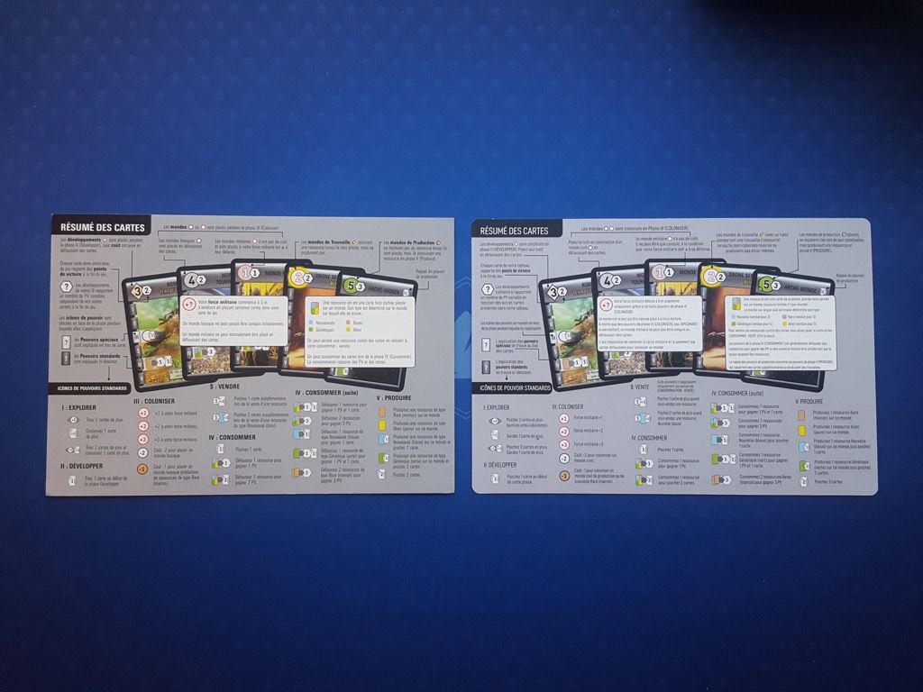 Comme précisé dans mon article pour des raisons de droits d'auteur et de droit d'images, aucune modification ne pouvait se faire sur l'iconographie des cartes et des aides de jeu. Ça peut paraître bizarre pour une réédition mais c'est comme ça...