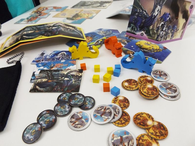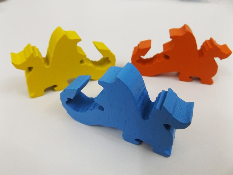 Autant débuter par le gros morceau du jeu, ce qui nous amène ici aux fameux dragons. Il existe 5 peuples différents dans le jeu. Cela n'aura aucune influence sur les règles, mais simplement sur la couleur de vos pièces ainsi que la forme du dragon que vous allez devoir réaliser en hommage à Ryu. Vos pions de joueurs seront justement en forme de dragons, de très gros dragons.