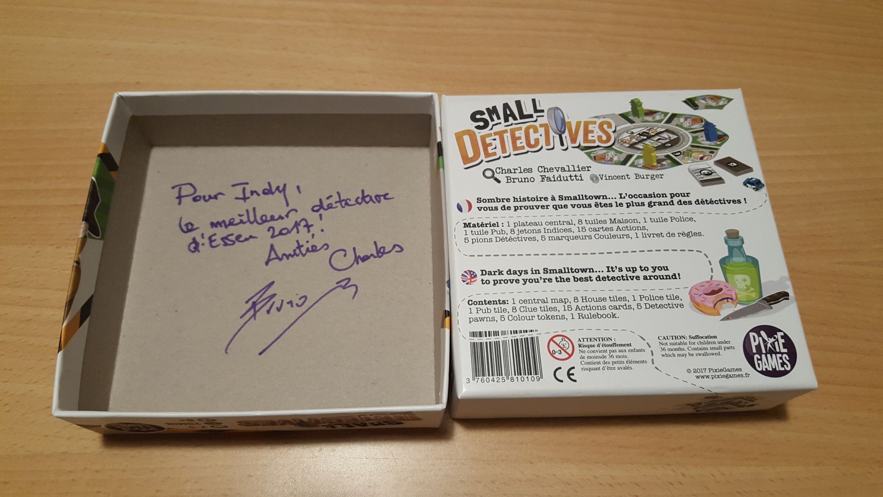 Le dos de boite et les petites dédicaces spéciales Essen 2017. Merci aux auteurs !