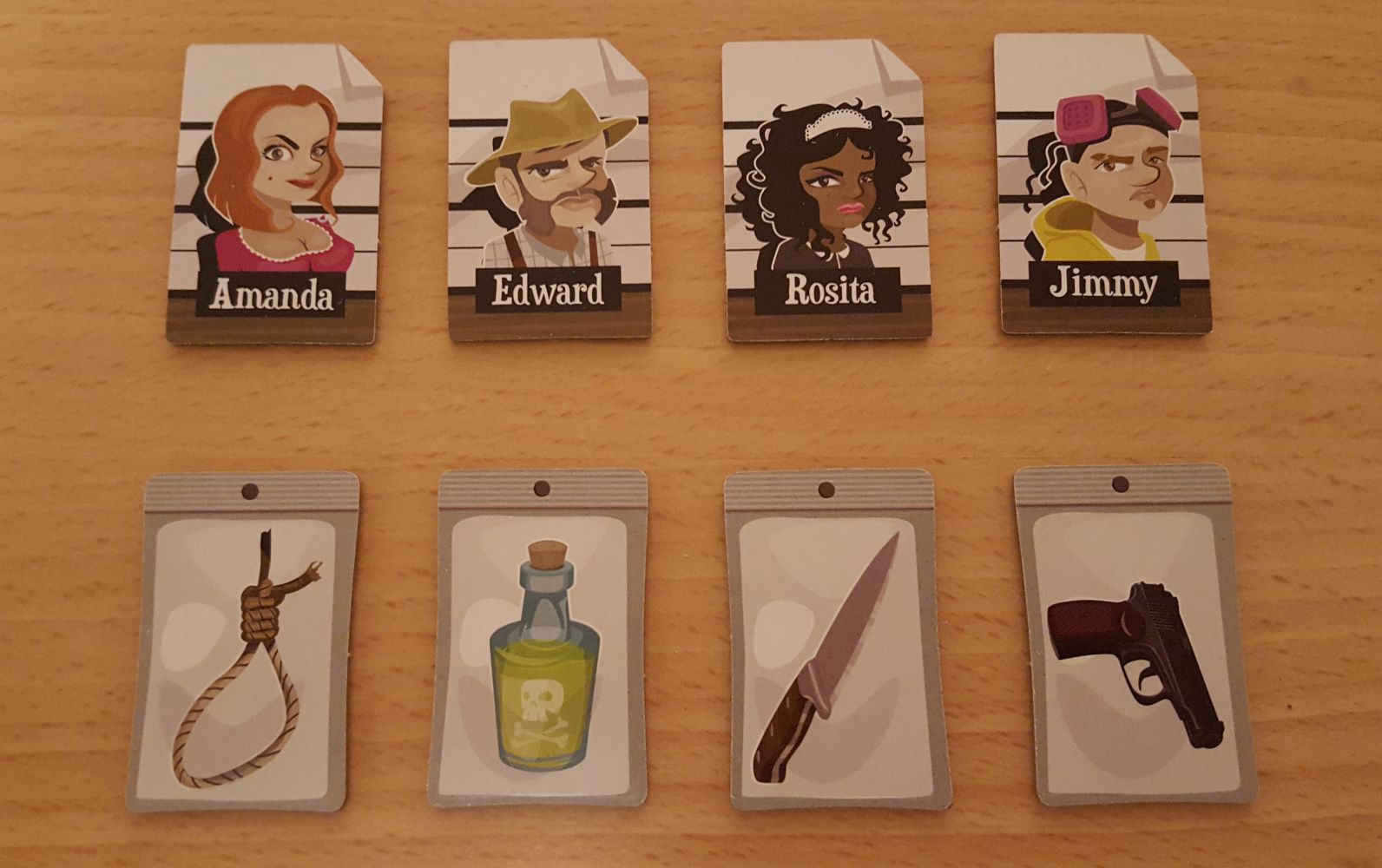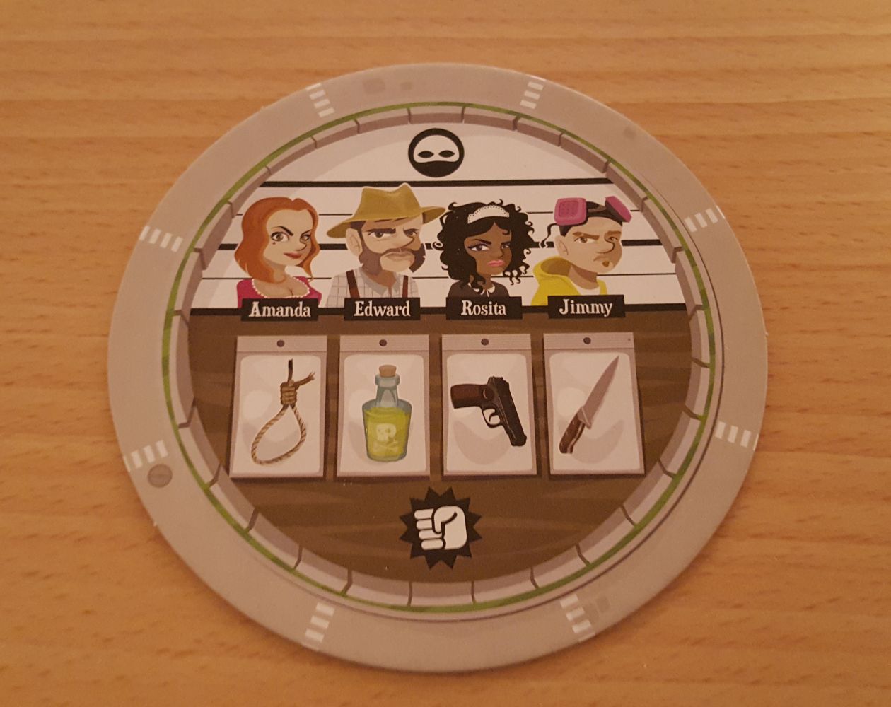 Les 4 jetons Indice/Suspect : Rosita, Amanda, Edward et Jimmy