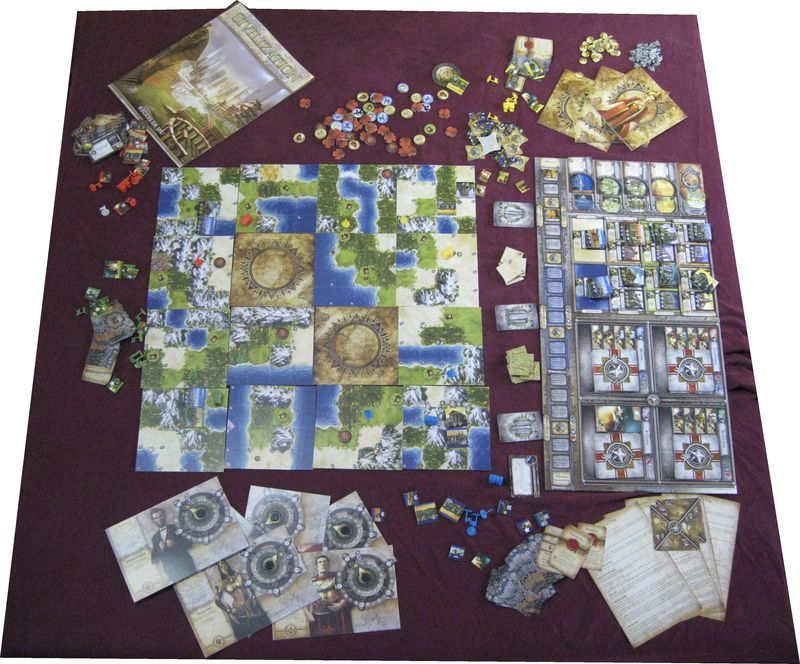 Ces tuiles sont disposées en carré ou en triangle suivant le nombre de joueurs, et seules les régions de départ sont visibles. Ainsi, aucune partie ne ressemblera à une autre.