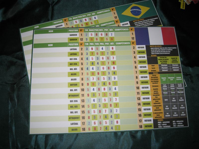 Chaque équipe a une feuille de match sur laquelle elle va écrire des choses et placer les marqueurs de fatigue.