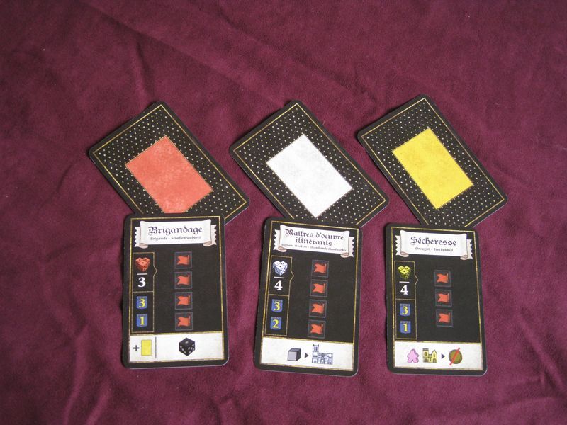 Les trois types de cartes évènements.