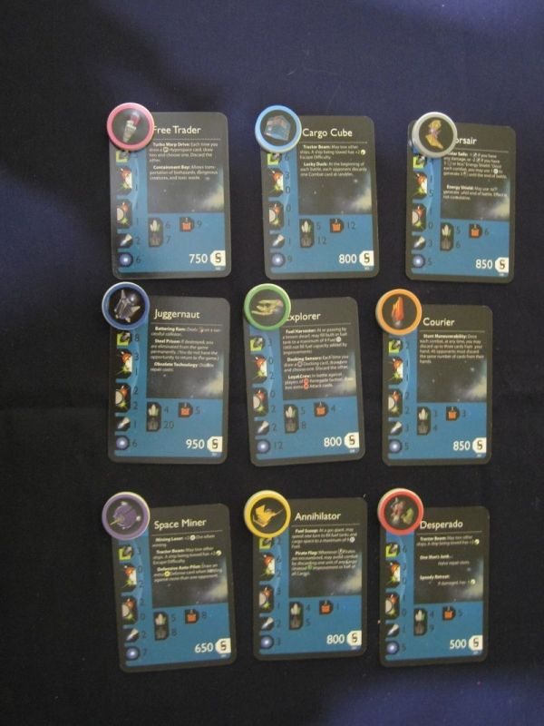 Chaque vaisseau est accompagné d'un gros pion qui permettra de représenter la position du vaisseau dans la galaxie.