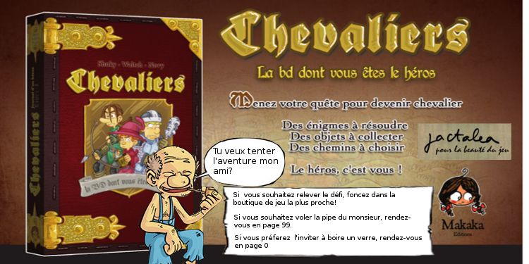"Menez votre quête pour devenir chevalier. Des énigmes à résoudre, des objets à collecter, des chemins à choisir. Le héros, c'est vous !".