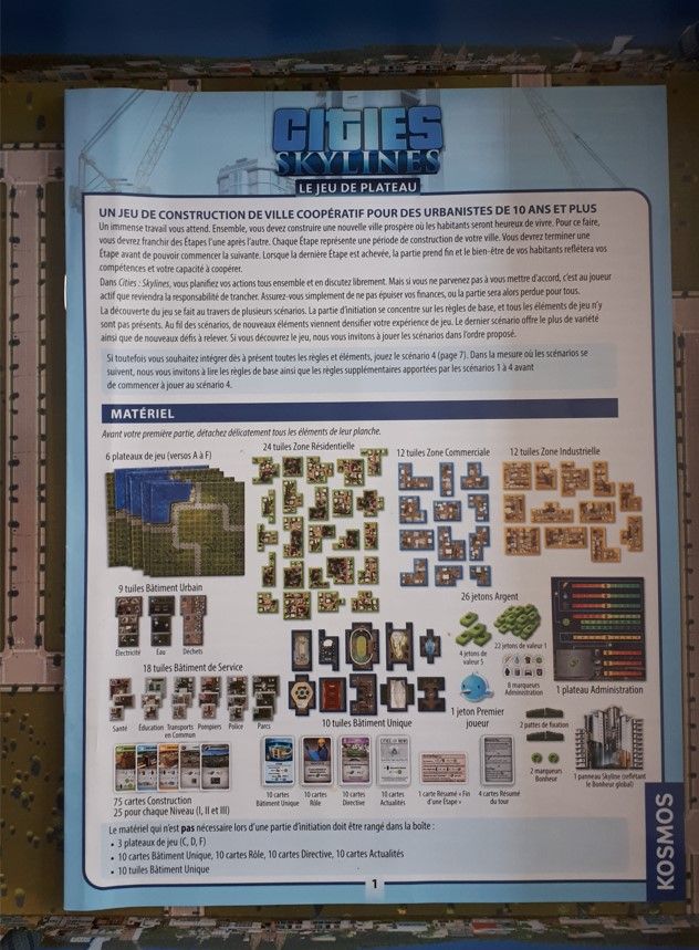 C'est un bon jeu, nous jouons à deux à la maison et c'est toujours un challenge de gagner la partie. La gestion des ressources, la gestion de l'espace, la recherche des différents services, tous ses aspects fond de city skylines un jeu agréable a jouer. Certaine partie, vous donnerons du fils à retorde préparer vous à toutes éventualitées. Les régles qui s'ajoutent au fil des parties d'initiation nous donne vraiment des sensations du jeu petit a petit. Puis dès que l'on se lance dans d'autre parties avec toute les options on fait des combinaisons de plateau qui nous donne de nombreux avantage mais le jeu est assez bien équilibré pour que toutes choses est un prix et que les ressources se gerent différement selon les parties.