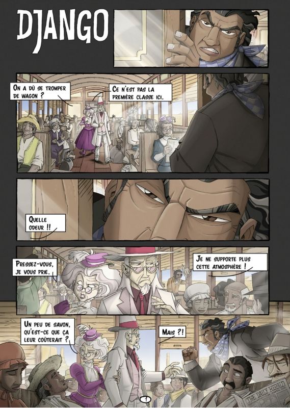 Grâce au mode histoire (entre autre, il n'est pas le seul) vous allez débloquer une petite BD qui vous permettra de lire les aventures de nos chers bandits, voilà par exemple la première page de Django.