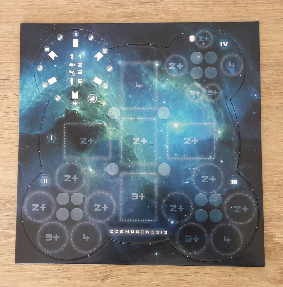 Zones II et III, en bas. Deux zones identiques où on placera à chaque tour des tuiles astres ( une de plus que le nombre de joueurs).