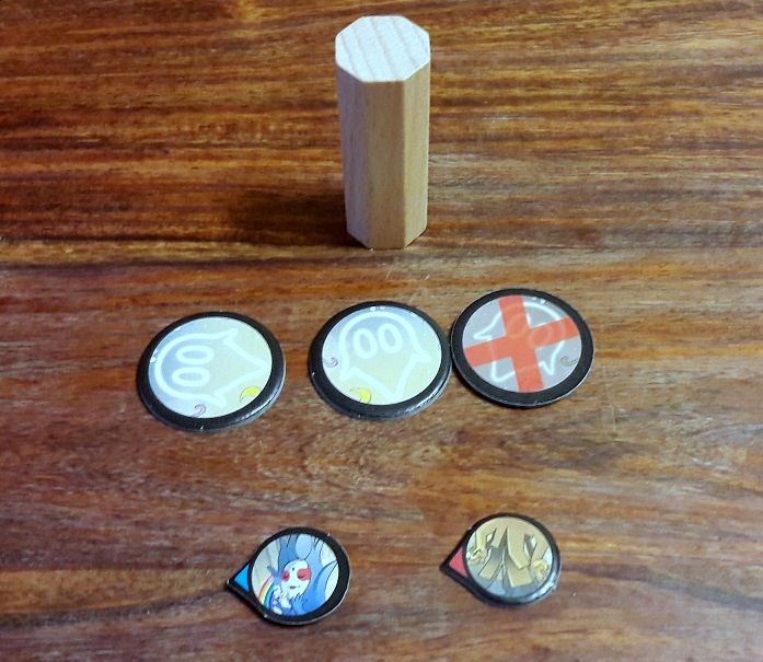 Je peux vous dire que cela pourra être parfois très simple, parfois très compliqué mais souvent très drôle (et pas seulement pour l'émotion fun ;) ). Heureusement vous aurez à votre disposition 3 jetons Bonus à usage unique, que vous devrez partager entre tous et pour toute la partie (donc il faudra les utiliser avec parcimonie mais pas trop quand même...) et qui vous permettront de changer 3 cartes (une jaune, une verte et une rouge).