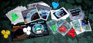 Les cartes ressources sont de différents types et chacun se score d'une façon différente. Certaines de ces cartes ont un symbole vous obligeant à mettre un de vos marqueurs sur la carte "trou noir". En fin de partie, le joueur majoritaire sur ce lieu perdra une partie de ces ressources. La partie prend d'ailleurs fin dès que 9 marqueurs en tout y séjournent ou dès que toutes les planètes ont été réclamées et qu'il ne reste que des cartes ressources révélées comportant ce symbole. L'heure des comptes est alors arrivée...