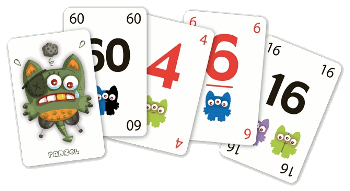 Les cartes rouges se multiplient entre elles pour donner un des chiffres inscrits sur les cartes noires. Chacune des valeurs des cartes rouges possède un monstre de couleur différente des autres cartes.