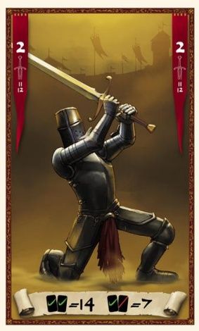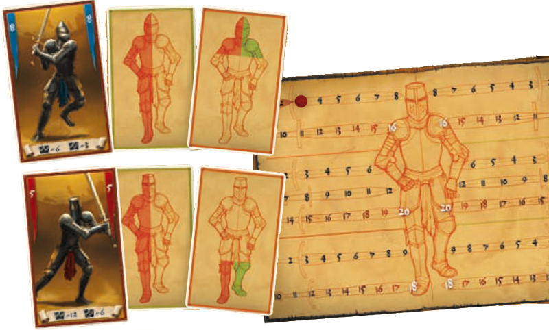 C'est joli et bien fait. Dommage que le plateau manque de bagou et qu'au final on a l'impression de n'avoir qu'un même dessin sur tout le matériel du jeu : un chevalier armé, dans une position de duel. Certes les illustrations varient, mais ça n'empêche pas l'impression de redite.