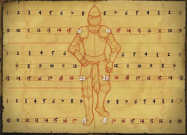 Vient ensuite une seconde phase durant laquelle l'attaquant tente de valider son avantage : il choisit secrètement une carte côté (droit ou gauche) et une carte localisation (tête, torse ou jambe). Son adversaire fait de même, essayant de deviner les intentions offensives. S'il devine les deux cartes, il pare l'attaque. S'il en devine une, il subit des dégâts légers dans la zone sélectionnée par l'attaquant, mais plus important si sa parade est ratée. Et comme le but est d'amener une zone à zéro ou avoir affaibli une zone de façon plus importante que l'adversaire à l'issue de trois manches, on peut petit à petit deviner où l'attaque risque d'être portée.