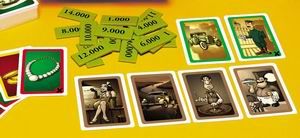 Compte tenu du prix modique de la boîte, le matériel fourni est tout à fait honnête : des billets de 1 à 16000 en carton épais, des aides de jeu (en allemand, certes), et un gros jeu de cartes petit format mais bien solide (avec aucun rappel dessus quand à leur effets): Amigo reste sur sa ligne de conduite et on a ici tout à fait de quoi jouer correctement.