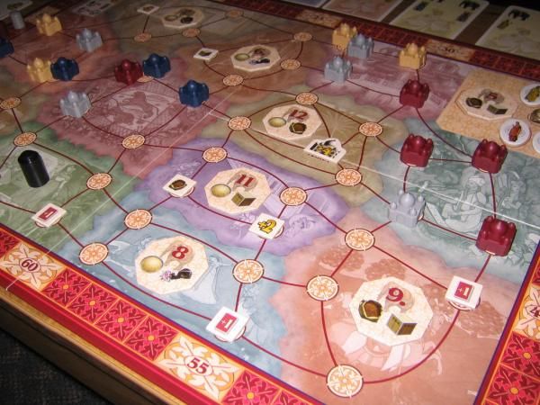 Mais figure aussi le jeu de plateau, où on amasse les points de victoire de différentes façons telles que regrouper différentes denrées où créer des chaines ininterrompues de palais.