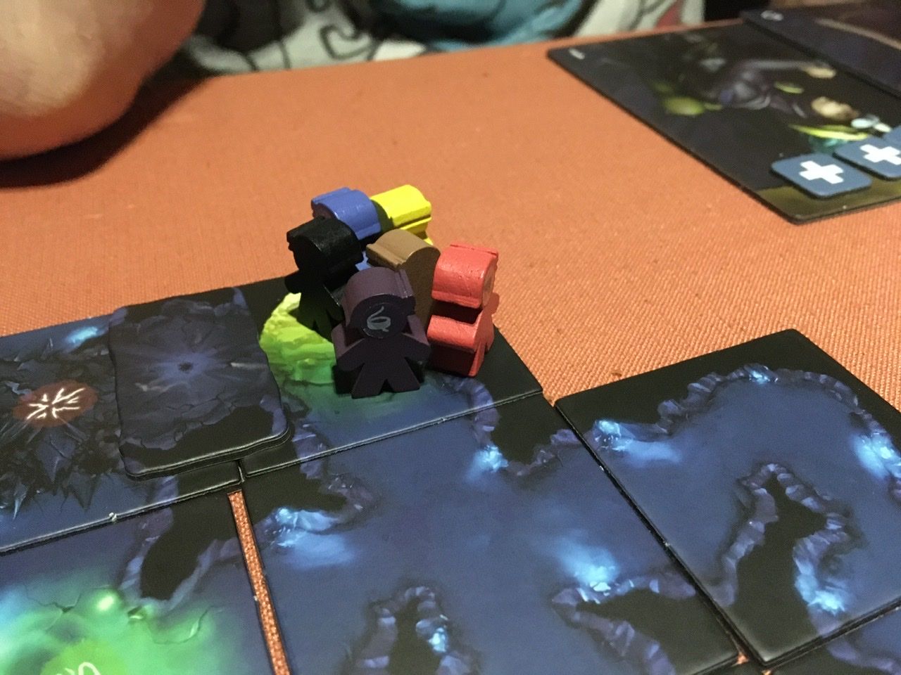 Les tours s’enchaînent jusqu’à ce que soit tous les spéléologues (ou presque) se retrouvent sur la tuile sortie et c’est donc une victoire, soit il n’y a plus de spéléologues conscients dans les cavernes et c’est une défaite.