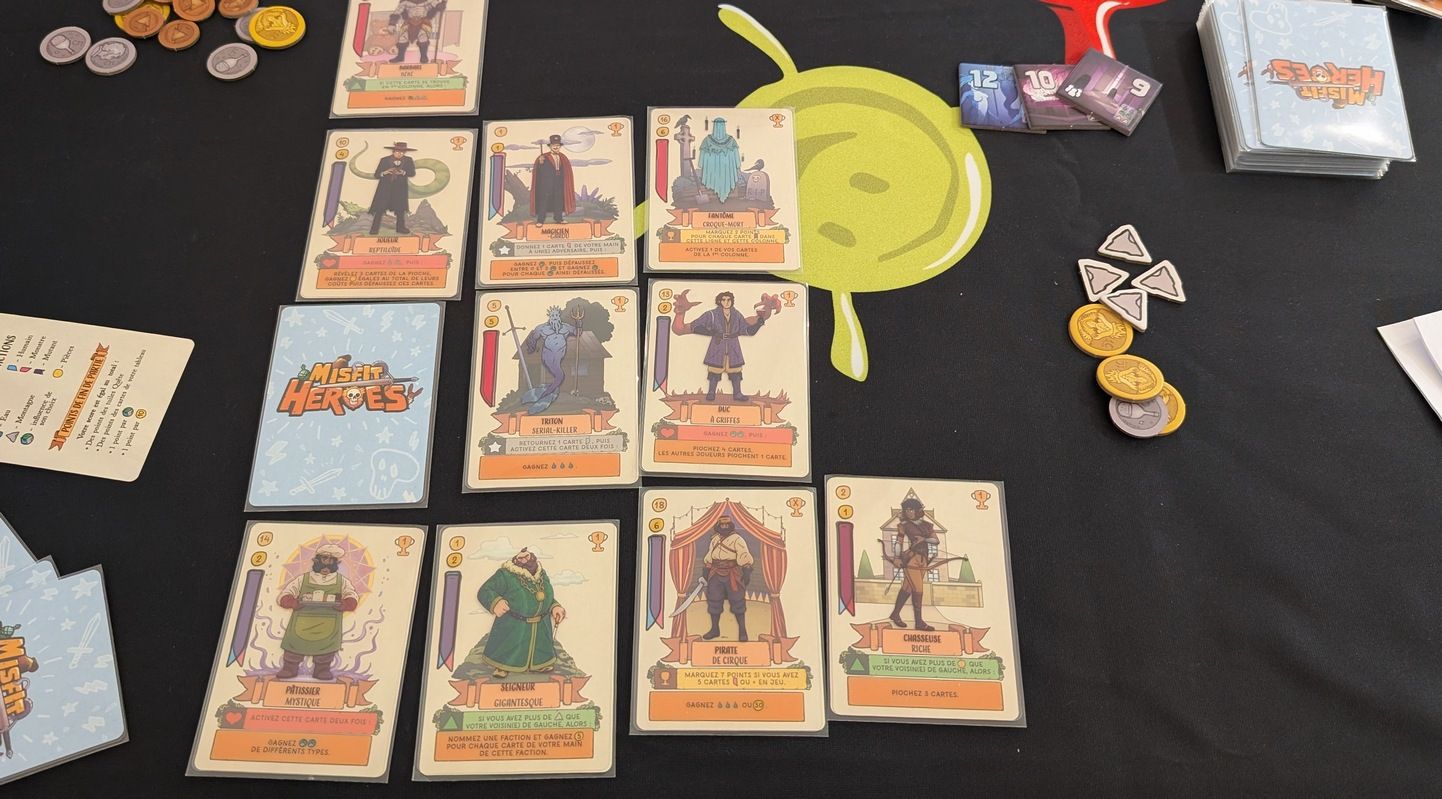 Le jeu propose un système de construction de cartes rappelant celui de Mystic Vale. Pour Misfit Heroes ce “card Crafting” se déroule avant chaque partie : vous créez vos propres cartes en glissant un transparent de personnage sur une carte d'attribut dans une pochette. Cela permet plus de 9 000 combinaisons.