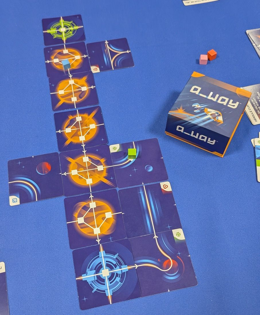 Vous devez compléter un parcours interstellaire en plaçant des tuiles pour que votre vaisseau traverse la galaxie plus rapidement que vos adversaires, vous pouvez également jouer des pouvoirs pour interagir sur votre parcours ou ceux de vos adversaires.