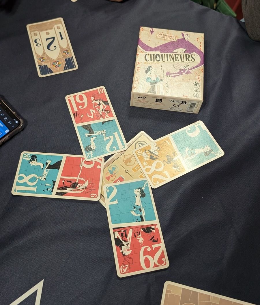 Chouineurs est un jeu de plis où, sans surprise, le but est normalement de remporter des plis... mais avec une astuce très bien choisie : ici, jouer la valeur la plus faible peut devenir une force.