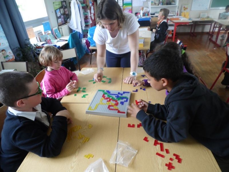 La maitresse de cette classe qui explique de nouveau le jeu appartenant à sa classe, qu'elle sort déjà à l'occasion.