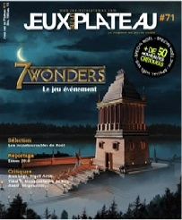 Une très belle couverture, orientée du côté de 7 Wonders nous met en garde à ce sujet: plus de 50 critiques de jeux nous y attendent. On y trouve celles au format habituel mais aussi 18 autres, tenant sur trois pages, qui nous donnent un condensé de leur version intégrale que vous aurez pu lire sur le site du magazine, avant la sortie de ce bimensuel, si vous avez pris le forfait abonnement qui va avec.