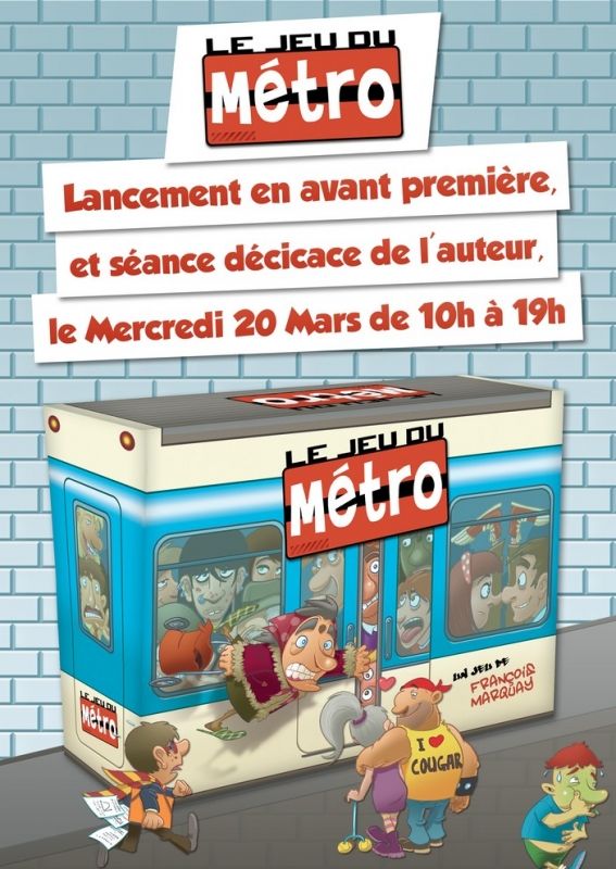 Les plus perspicaces d'entre vous auront également remarqué la photo qui accompagne cette news et saurons donc déjà que le 20 de ce mois-ci, soit tout prochainement, vous pourrez vous procurer le Jeu du Métro en avant-première dans les magasins de l'enseigne Virgin, mais aussi vous faire dédicacer votre boîte par l'auteur himself, et jouer avec lui, au Virgin des 4 Temps, à La Défense.