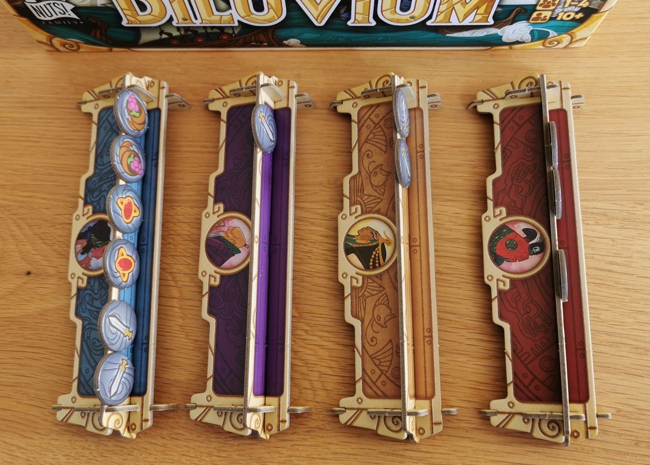 Diluvium est un bon jeu initié avec des règles simples. Les conséquences de vos actions peuvent être importantes car la partie est très courte. Il faut noter que, comme les ressources sont très limitées et pas en quantités égales, les parties à 4 joueurs peuvent se terminier en moins de tours que celles à 2 joueurs : À 4 joueurs on prépare 7 ressources par joueur alors qu'a 2 joueurs on en prépare 8 par joueur.