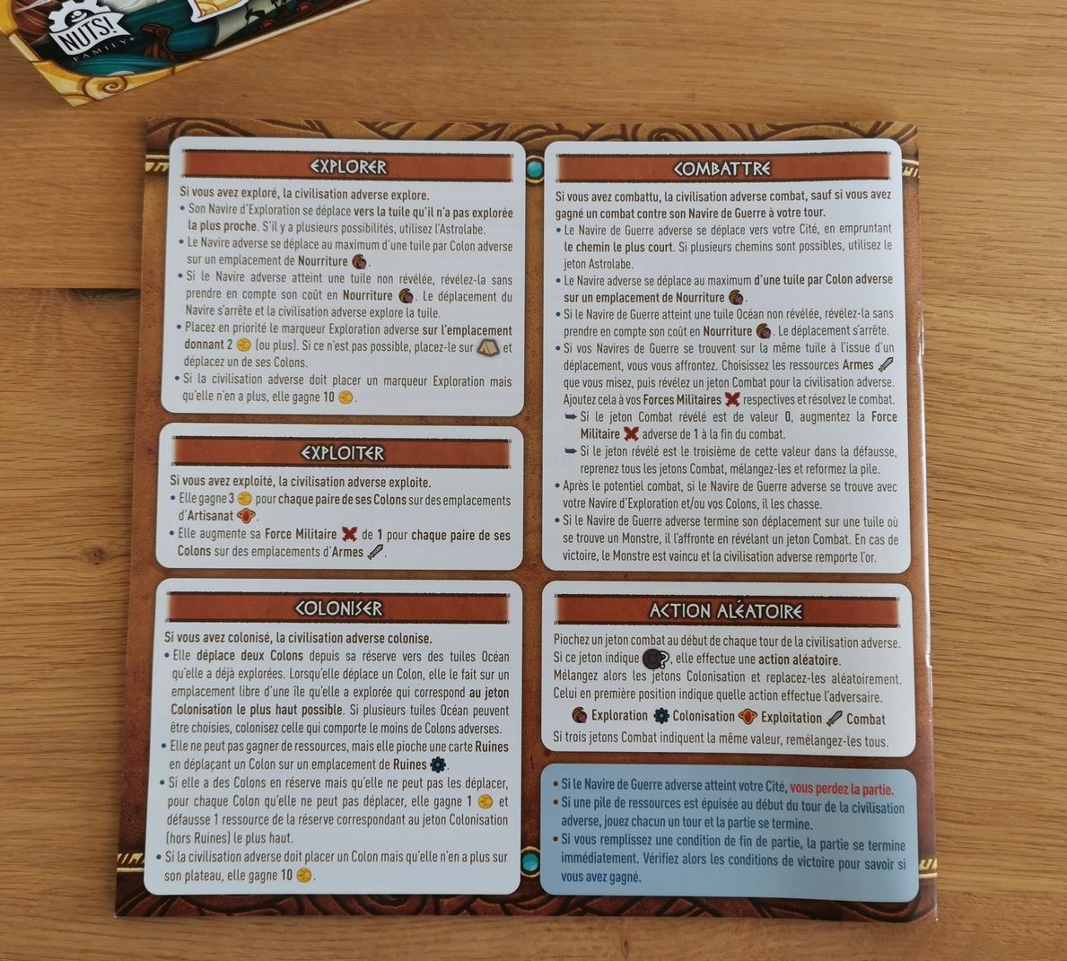 Les règles reposent sur les 4 mêmes actions. Votre civilisation s'oppose à une civilisation gérée par robot qui bénéficie d’avantages en rapport avec l’histoire.