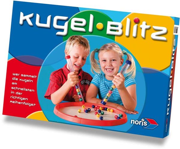 Kugelblitz vient d'avoir droit à une toute nouvelle édition, certes en allemand mais incorporant les règles du jeu en français. Dans ce jeu d'action pouvant se pratiquer jusqu'à 4 joueurs, on doit attraper des billes, portant différents chiffre et dont la couleur varie également, grâce à sa pipette.