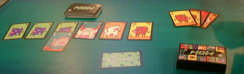 Le lendemain matin, on a commencé notre parcours dans le salon par une partie de Mow, le nouveau jeu de cartes de Bruno Cathala, un jeu qui me fait penser par certains aspects à 6 nimmt ou Upturn. Sympa et super mignon, mais pas tout à fait mon style de jeu, ce qui explique que je ne l'ai pas acheté.
