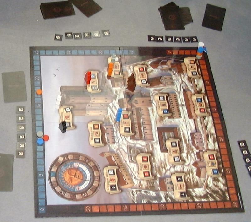 Le soir à l'auberge, on se lance dans une partie de Die Prinzen von Machu Picchu, le nouveau jeu de l'homme qui (ré)inventa la roue, à savoir Mac Gerdts. Après des débuts pas évidents, on comprend vite qu'il est essentiel de monter un maximum de fois son personnage pour récupérer des cartes qui donneront des points au final, tout en plaçant astucieusement ses pions sur le plateau de jeu. La mécanique n'est pas inintéressante mais le décompte des points en fin de partie est pour le moins bizarre.