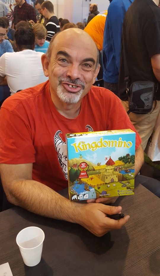 C'est le moment de se faire dédicacer ses boîtes de Kingdomino et de Queendomino par Bruno Cathala sur le stand de BlueOrange.